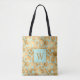 An exotic animal patterned design, this tote bag features golden giraffe print on a mint background. Using a monogram initial in a box, this bag is great for a stylish lady. Order yours today!