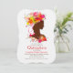 A beautiful girl's profile adorned with colourful flowers. A beautiful invitation for a special Quinceañera celebration.
