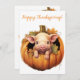Adorable pig in a Thanksgiving pumpkin watercolor artwork can send your greetings this season. Edit the text on the back to include your own custom greeting. Also, all animal-themed products sold in the Paws Charming shop help us make a donation to animal charities, so you are doing good while you shop. Thanks for looking; we appreciate your business at Paws Charming.
