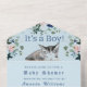 Lovely Kitten Flowers Blue It's a Boy Baby Shower All In One Invitation