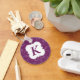 Lovely Labels Purple Damask Custom Initial Key Ring