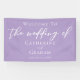 This lovely lilac wedding banner features beautiful white typography on a soft purple background for a spring afternoon ceremony. Lavender pastel decor is a delicate colour choice for an elegant garden occasion.