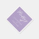 This lovely lilac wedding napkin features beautiful white typography on a soft purple background for a spring afternoon ceremony. This lavender pastel decor is a delicate colour choice for an elegant garden occasion.