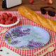 These paper plates feature beautiful lilac blossoms against a springtime sky.