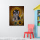 Cute and lovely little dog with sunflowers on a dark golden background. Get this cute yorkie and have a Happy Year of the Dog!