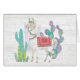 A soft, watercolor with a llama standing among cacti. Artist: Mary Urban