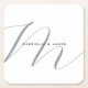 Lovely Monogrammed Black White Grey Calligraphy Square Paper Coaster