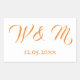 The perfect stickers for wedding related stationery, this item features a lovely orange and white colour scheme. With orange font written on a white background, the couple's initials are in the centre with the wedding date underneath. Personalise yours today!