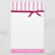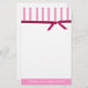 Pretty stationary with a header done in pink and white stripes, a deep mauve ribbon and a pink footer area on the bottom, with a quirky quote. Great looking stationary for any day.