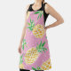 Lovely pineapple on grunge pink polka dots background. Cute summer illustration pattern