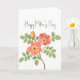 "Happy Mother's Day" lovely floral card for mum. It has a nice vintage feel to it, although it is an original modern hand-painted floral design. The fine pink, coral and yellow shades stand out nicely against the greenery of the supporting branch.