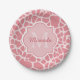 Lovely Pink Giraffe Pattern With Monogram and Name Paper Plate