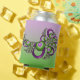 Lovely Pink Green Hearts Modern Abstract Fractal Can Cooler