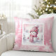 Lovely Pink Snowman Pillow Soft Winter Scene