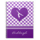 Chequered gymnastics notebook with a purple and white design. A big purple heart has a gymnast silhouette inside! Add your own text before you order! Additionally, use the "customise it" button to access more options, including a different font!