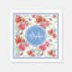 Lovely red poppy floral paper napkins with pretty blue and orange butterflies. Personalise by adding your name and monogram to the rounded little boy blue octagon badge. This is part of the Red Poppy Floral Blue Butterfly Monogram Collection.