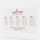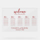 Display a welcome and seating chart for your guests with this red and clear acrylic wedding sign. The chart lists 5 tables with the option of listing up to 10 guests per table.