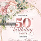 Lovely Rose Gold Blush Flowers 50th Birthday Party Invitation