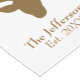 A lovely table runner that is dramatic and one of a kind, customise this beauty today. Set upon a white background this item features a deer head with your name and date your family was established in beautiful brown font. Personalise your table runner today!