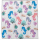 Colourful seahorses mingle with coral, seaweed, and seashells on this ultra cute marine life shower curtain.