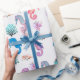 Very cute and colourful seahorses are surrounded by corals, seaweeds, and shells on this marine life wrapping paper. Great for kids, birthdays, ocean-themed weddings, or any occasion.