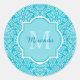 Lovely Turquoise Damask Pattern Monogram With Name Classic Round Sticker