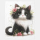 Lovely Tuxedo Kitten with Flowers Throw Pillow Fleece Blanket