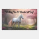 Lovely picture of a unicorn in the forest, in soft pastel colours, is featured on this rectangular sticker. Use this sticker for special mailings, decorating, scrapbooking and more. With message, "Wishing You A Wonderful Day", great for unicorn fans too!