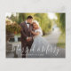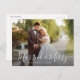 wedding announcement holiday card with white script and a thank you message to your guests. The couples image can be personalised.