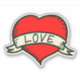 Hand-drawn heart with text and ribbon.