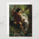 Vintage illustration Victorian love and romance image featuring a young couple in love swinging on a swing from a tree in a forest. Artist: Pierre Auguste Cot; titled Spring, 1873.