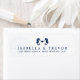 An eye-catching set of nautical style return-address labels for your mailing needs. It features a double seahorse illustration in the foreground and a vintage style print of a large wind rose compass in the backdrop.
