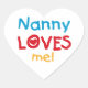 Nanny Loves Me T-shirts, cards, stickers, bodysuits bags, and more with colourful red, yellow, and blue text and heart design. These Nanny Loves me apparel and gift items will make nanny smile!