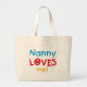 Nanny Loves Me T-shirts, cards, stickers, bodysuits bags, and more with colourful red, yellow, and blue text and heart design. These Nanny Loves me apparel and gift items will make nanny smile!