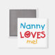 Nanny Loves Me T-shirts, cards, stickers, bodysuits bags, and more with colourful red, yellow, and blue text and heart design. These Nanny Loves me apparel and gift items will make nanny smile!
