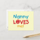Nanny Loves Me T-shirts, cards, stickers, bodysuits bags, and more with colourful red, yellow, and blue text and heart design. These Nanny Loves me apparel and gift items will make nanny smile!