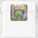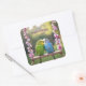 Loving Budgie Couple on Swing Custom Wedding Favor Square Sticker