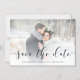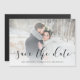 This elegant save the date magnetic card features your personal photo with a romantic black script overlay.