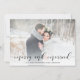 This elegant Christmas card features your personal photo with a romantic black script overlay that says "merry and married", and a marble look on the back.