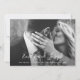This elegant save the date card features your personal photo with your names in a romantic white script overlay, and a modern marble look on the back.