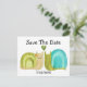 Cute themed wedding save the date postcard, with fun graphics of two smiling snails and a green heart between them. Personalise, the front and back, with your wedding information. Matching wedding products are available.