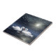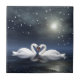 Two swans in a beautiful midnight moon and star light setting with their necks forming a romantic heart shape ceramic tile