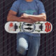 The skateboard design, crafted for the celebration of Valentine's Day, is a striking visual composition set against a crisp white background. Utilising vector images, the design features a prominent red banner adorned with three elegant typographies that convey the message "Happy Valentine's Day." Central to the design is a silver frame encapsulating the affectionate silhouette of two couples holding hands, which adds a romantic touch. Below this imagery, a small red heart is elegantly surrounded by floral elements, enhancing the overall aesthetic and sentiment of love and togetherness.