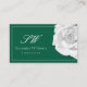 The design features a pretty large white rose on the front and a small one on the back, on a plain green and white background with a fine decorative frame.