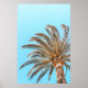 Low-angle photography of a green palm tree under a poster