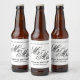 Low cost beer bottle labels for chic wedding party. Fancy design template with script typography. Personalise with names of bride and groom plus date of marriage. Part of beautiful matching theme involving rich decorations and luxury stationery. Perfect for your fantastic wedding. Colour palette can be changed to match your scheme. Luxurious custom labels for exclusive personalised drinks.