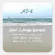 Beach life return address envelope seal.  Square, or round, stickers have a sea and sand background.  Include first initials of a couple, or monogram at the top.  Name(s) and address are in white using two font styles.  This design works for the square and round stickers, which come in two sizes.