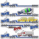 Lowboy Trailer Big Rig Sticker Set. Featuring the original "Big Rig Truck" artwork of Rick Ellinger. Big rig semi truck with lowboy and various loads: dump truck, semi truck, school buses and concrete mixer. Great for scrapbooking, embellishing mugs, water bottles, school notebooks and many other items, for use as car stickers and much more. Perfect gift for the truck driver or enthusiast on your gift list or for the child who loves stickers or trucks. 5 large individual stickers.