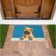 The soft royal blue background adds a bold yet elegant touch, perfect for welcoming entryways. Designed with extra space at the top and bottom, it allows easy personalisation with names, welcome messages, or custom text—making it ideal for unique dog-themed doormats and thoughtful gifts.