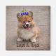 Loyal and royal adorable corgi pup with a cartoon crown, the dog breed favored by the Queen.